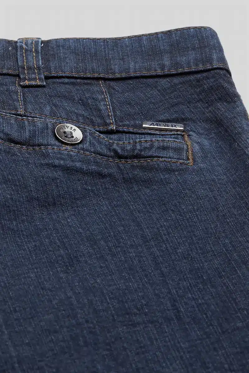 Die sportlichen Herren Stretch Jeans „Diego“ von Meyer überzeugen mit klassischen Swingpockets, stilvollen Kontrastnähten und hochwertigem 10 oz Denim. Diese Jeans bietet dank des bequemen Stretch-Dehnbunds optimalen Komfort und Bewegungsfreiheit. Mit dem modernen „Solar-Save“-Verfahren bleibt die Farbe des Blue-Stone-Denims auch bei intensiver Sonneneinstrahlung erhalten. Raffinierte Details wie die versteckte Sicherheitstasche mit Reissverschluss und das farbenfrohe, buntgewebte Innenfutter machen diese Jeans ganzjährig tragbar und besonders vielseitig. Perfekt für Herren, die Wert auf Stil, Funktionalität und Komfort legen.